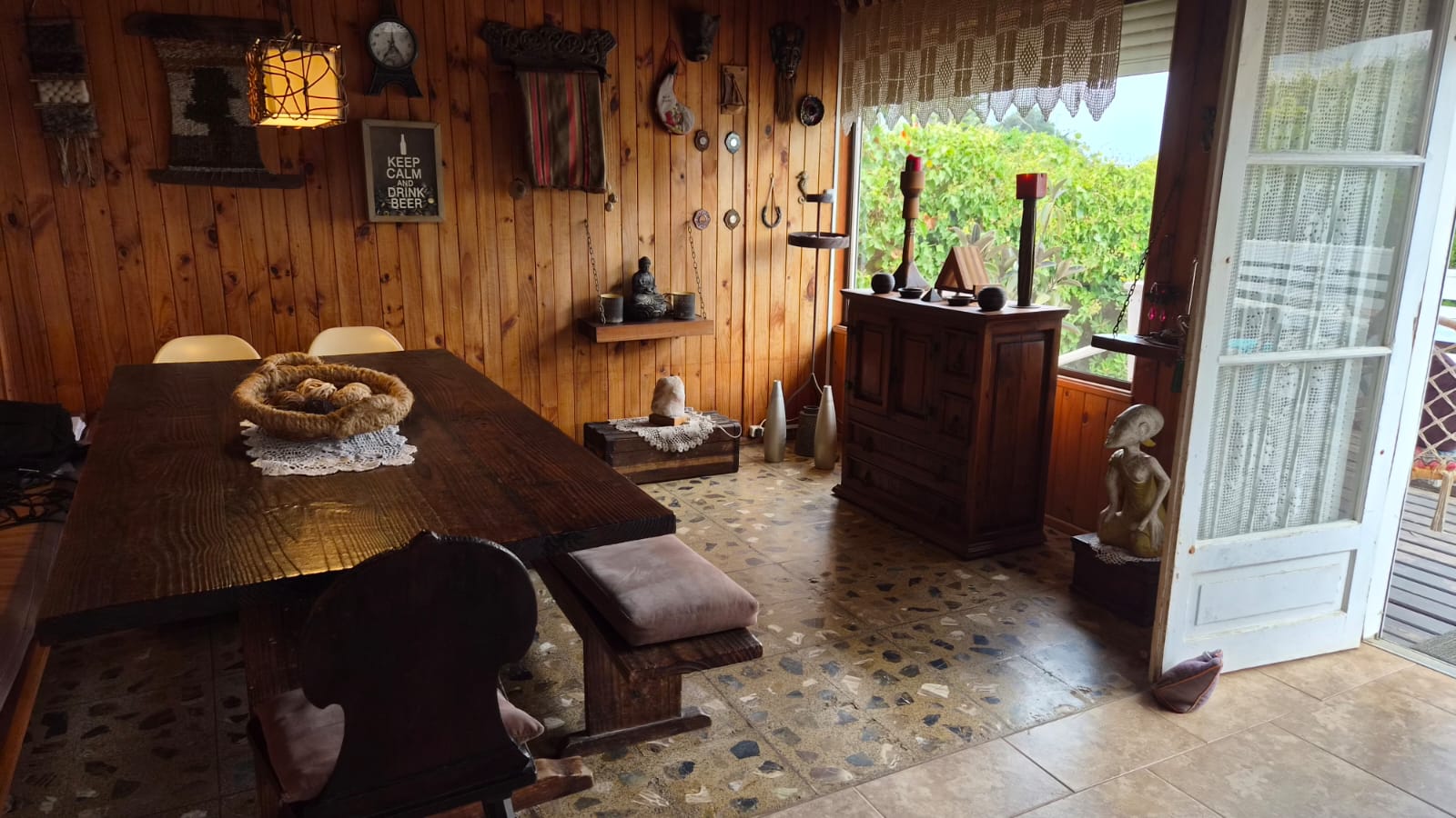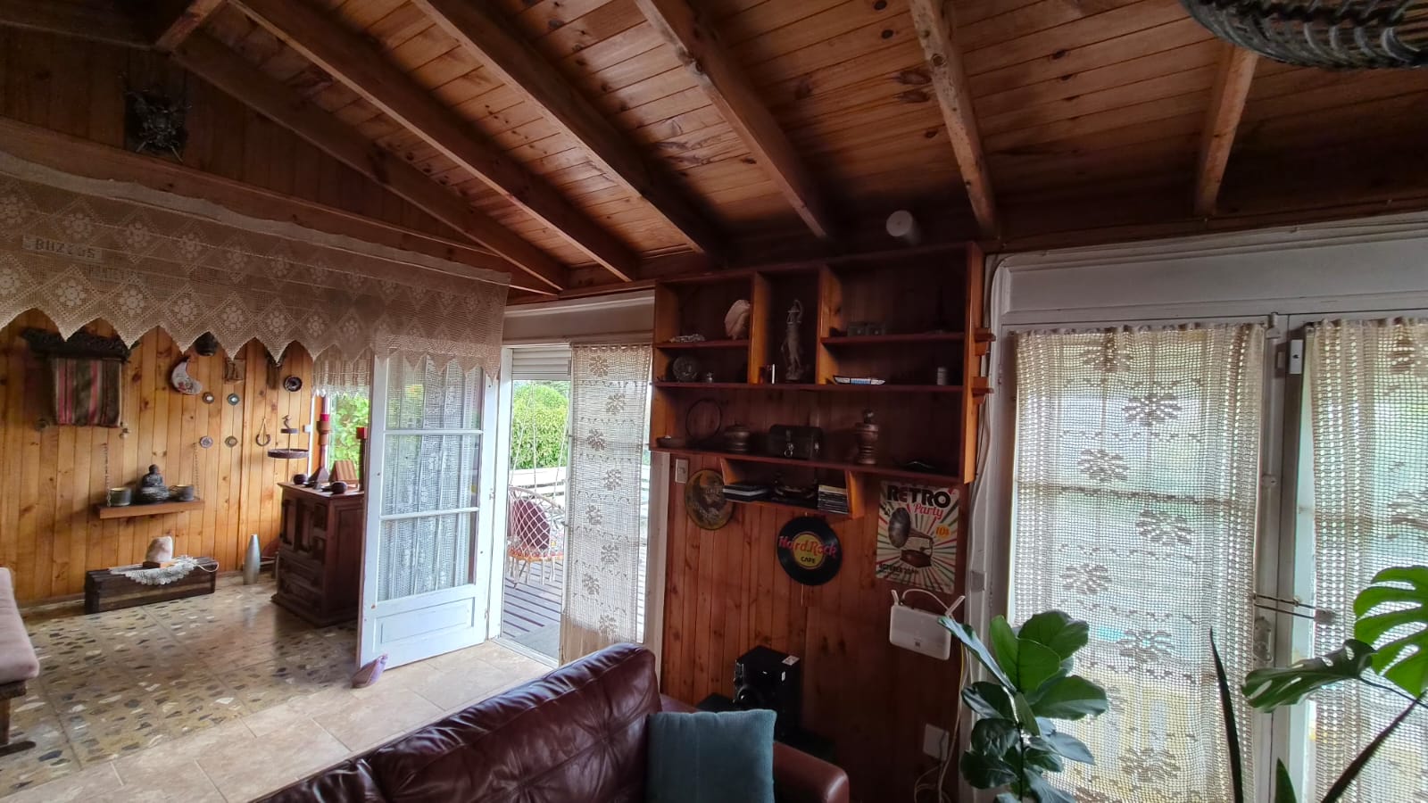 – Interior en madera con vigas a la vista